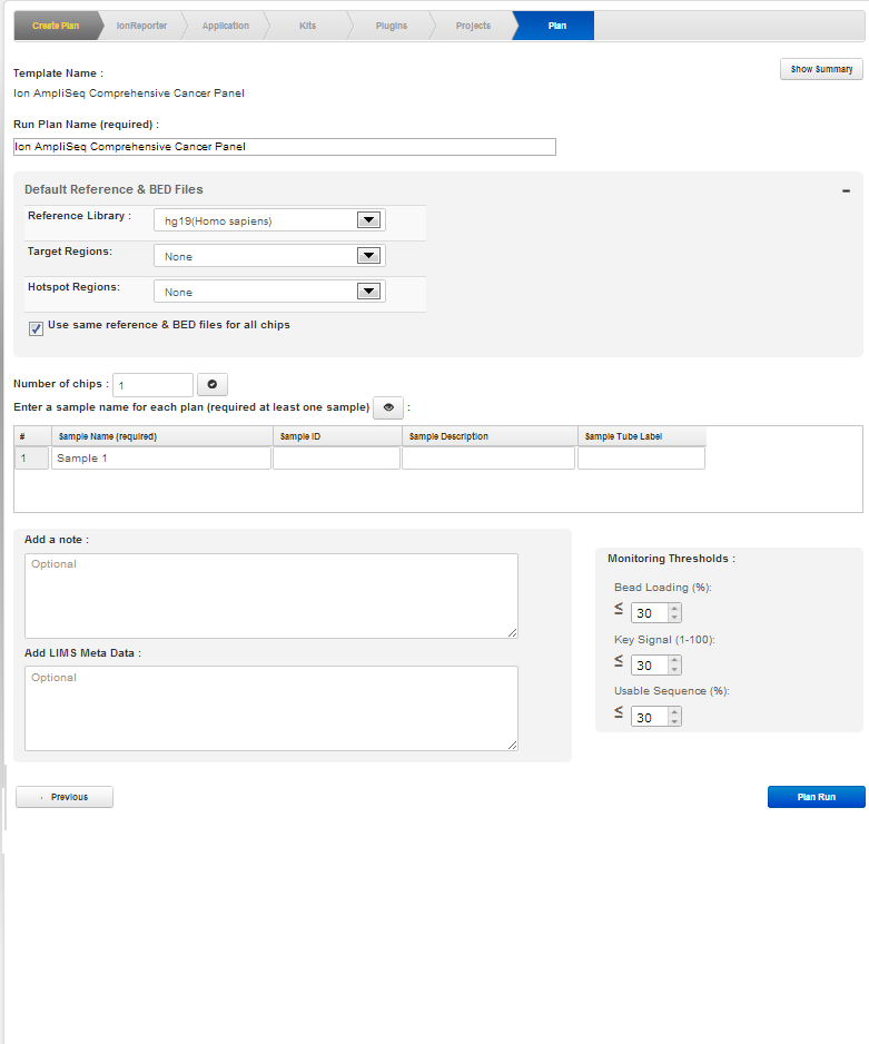 • The Torrent Suite Software provides pre-installed plan templates with the correct defaults for Ion sequencing products and also for sequencing applications. You can use the pre-installed product templates or customize your own templates.